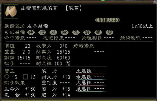 合成此物品需要的材料:杏葉花樣腕貫+劍花菱花樣腕貫