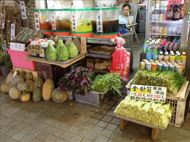 有青草店、水果店、賣青菜的攤販、滷味店、蜜餞零食跟賣茶葉的茶店。