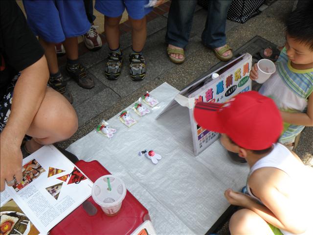 只見到一群小朋友在那邊喊:「站起來、坐下、跳舞.....」