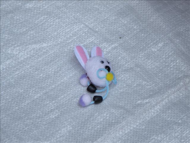 然後他的手指抖動兔子玩偶也跟著抖動,