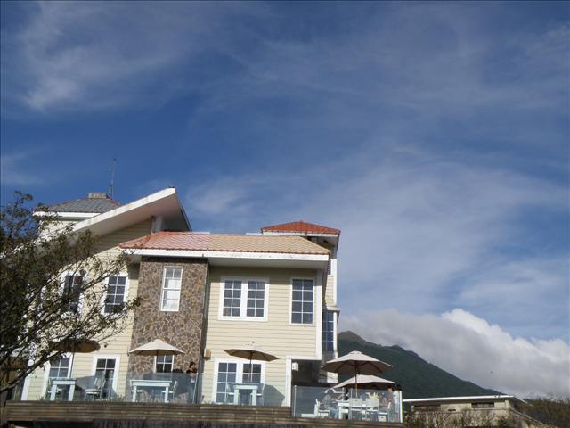 ↑餐廳的建築配上湛藍的天空,真的好美好美...........