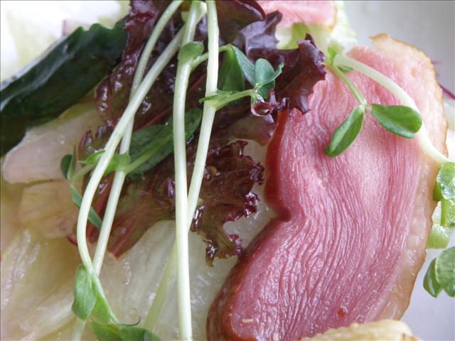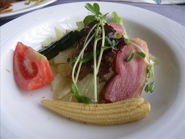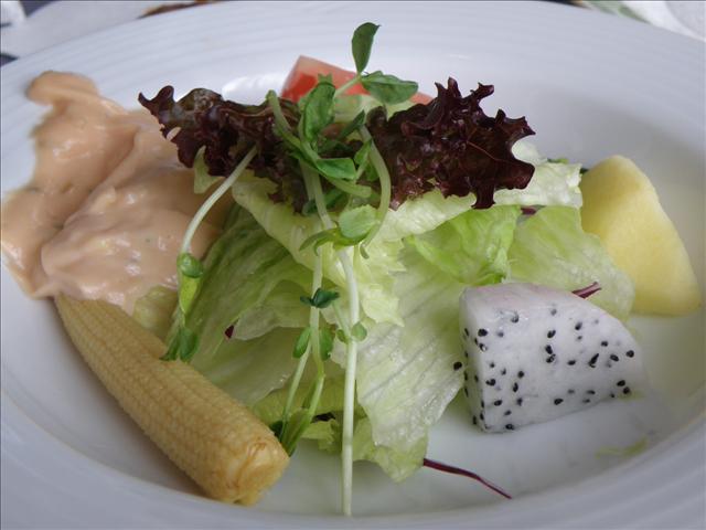 沙拉有兩種一種是庭園沙拉佐千島醬,一種是煙壎鴨胸油醋沙拉。
