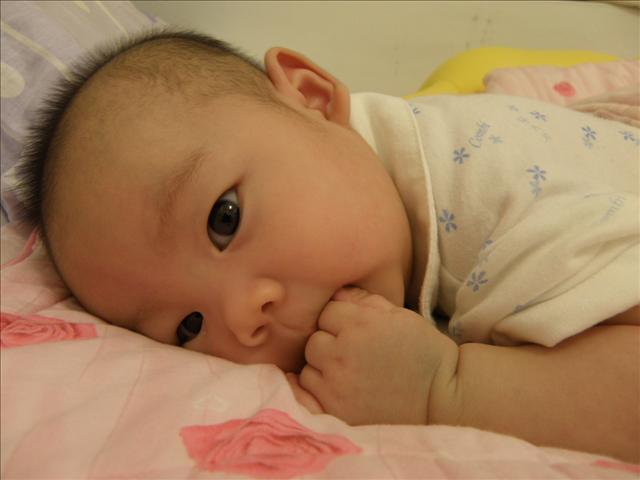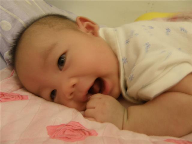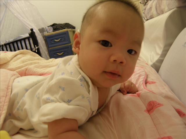 太可愛了~感覺他好像快要會爬的樣子....