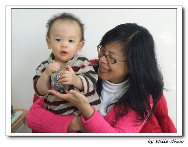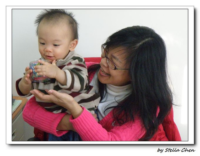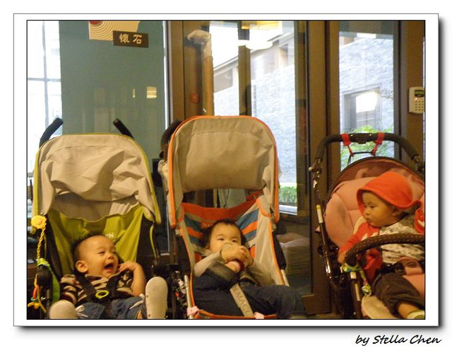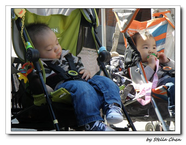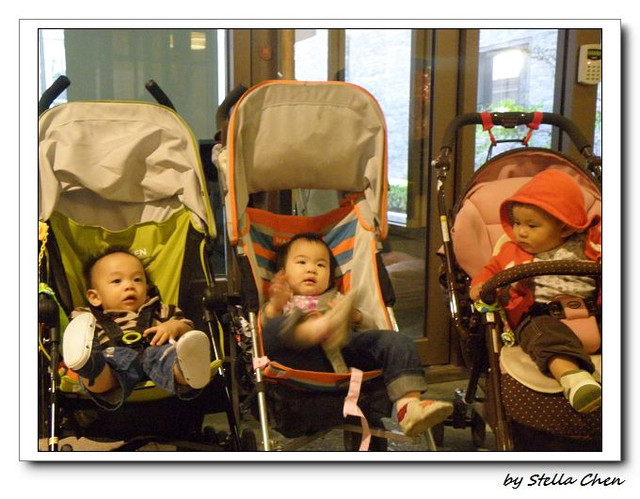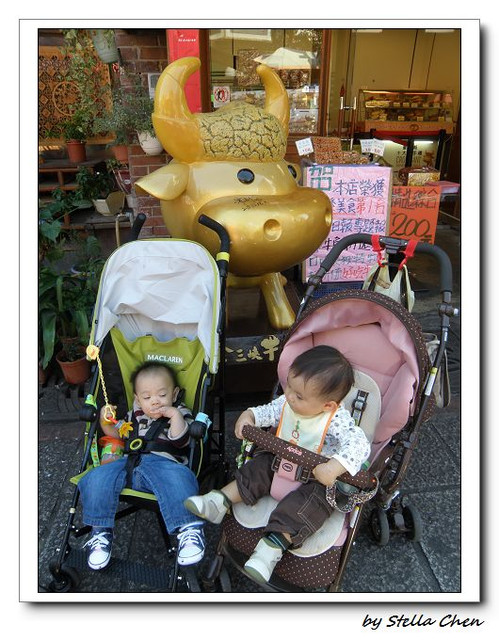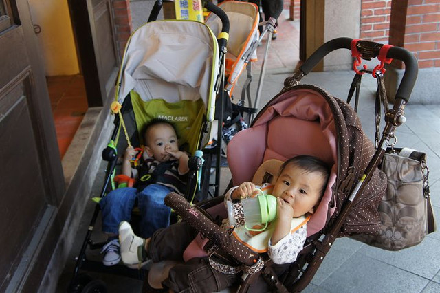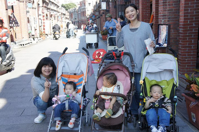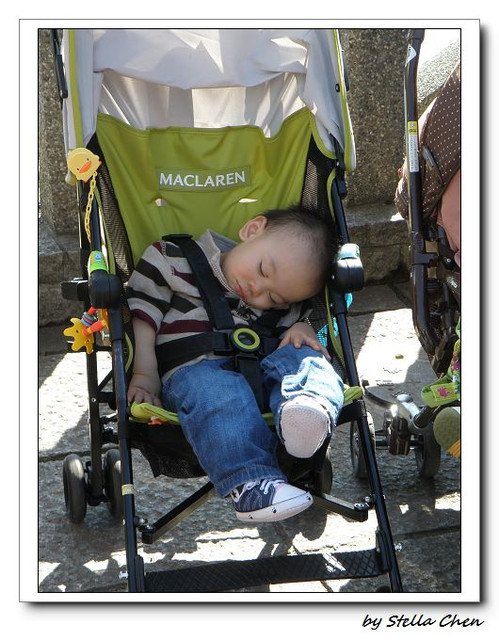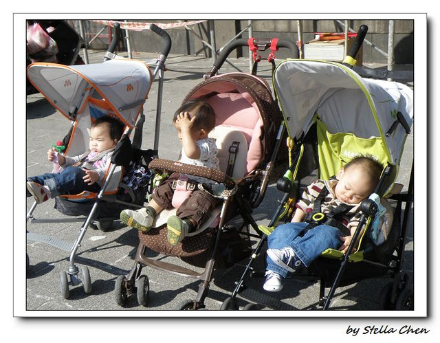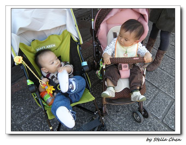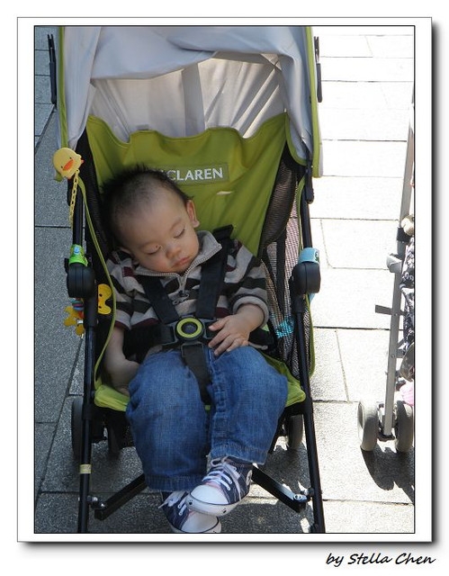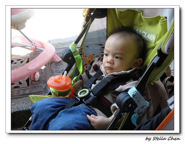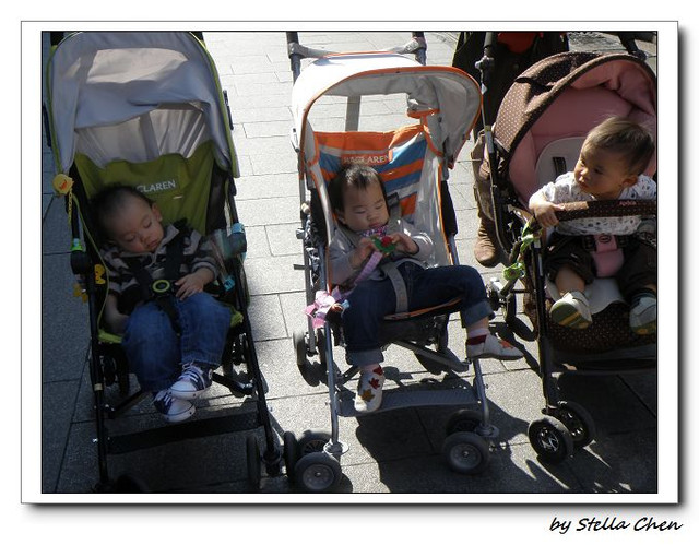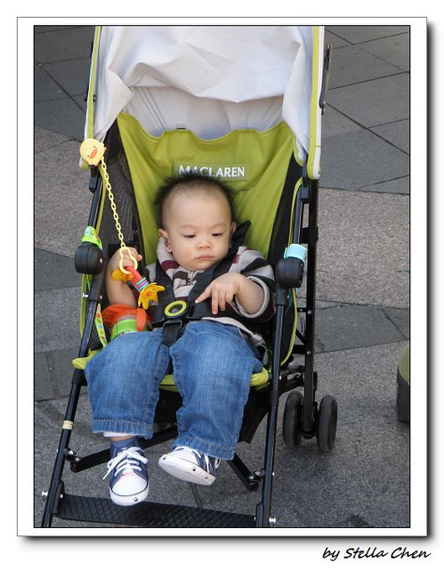 ↑小蘋果不願意坐推車,只好媽媽抱著拍照!