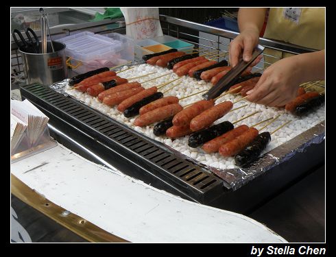 ↑墨魚、櫻花蝦、黑鮪魚、飛魚卵做成的香腸?看起來就亂恐怖的...