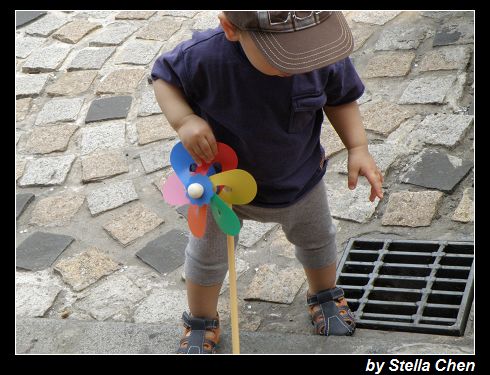 ↑小魚把風車當笛子了