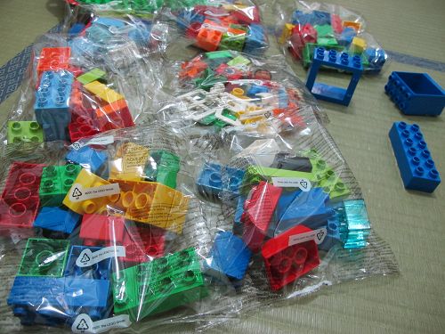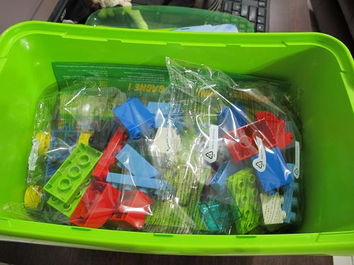 ↑總共有七袋+一塊綠板+兩個窗型積木一個長條(12孔)+一台車