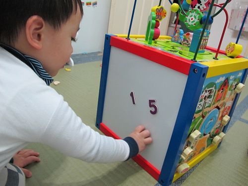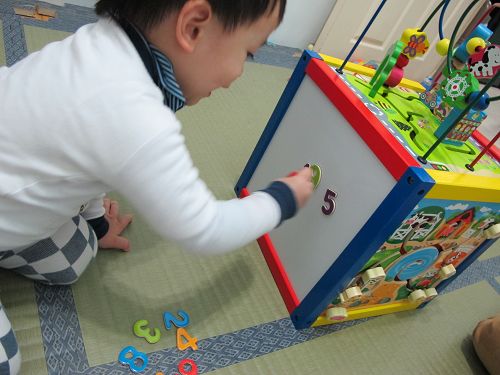 ↑小魚現在認得1~9的數字,所以他很喜歡貼數字