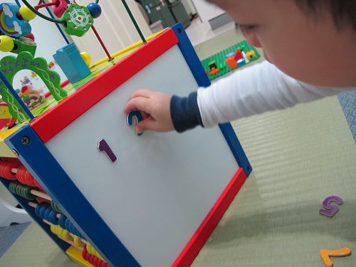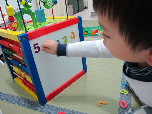 ↑這面是小魚最愛的,因為他可以把自己熟悉的數字貼上去 還可以當白板寫字