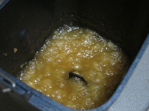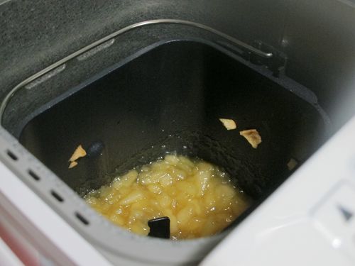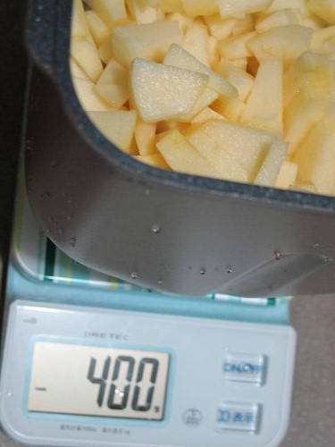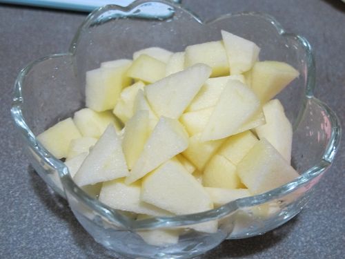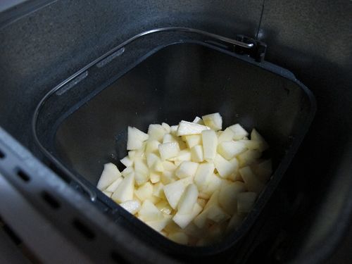 使用麵包葉片跟容器 放入的順序是 砂糖>蘋果丁>檸檬汁