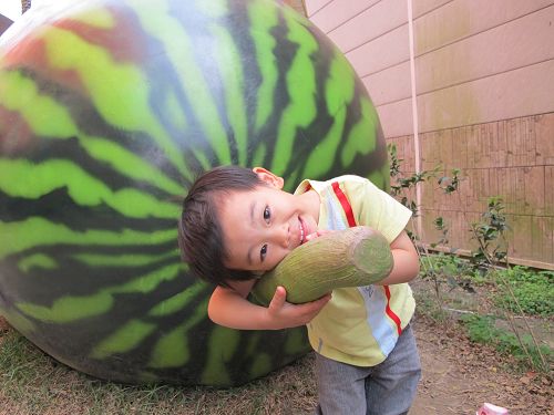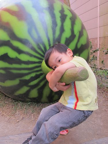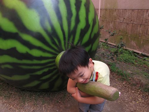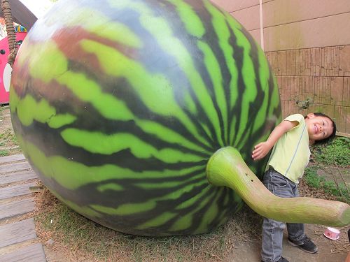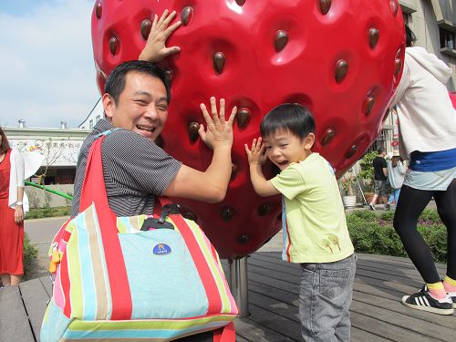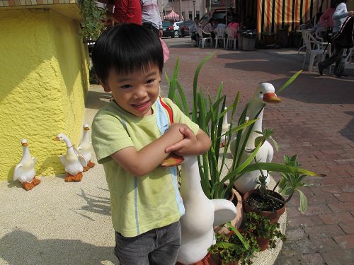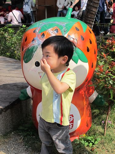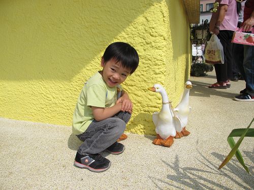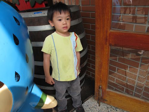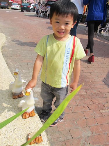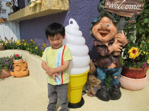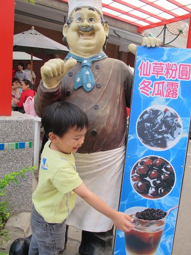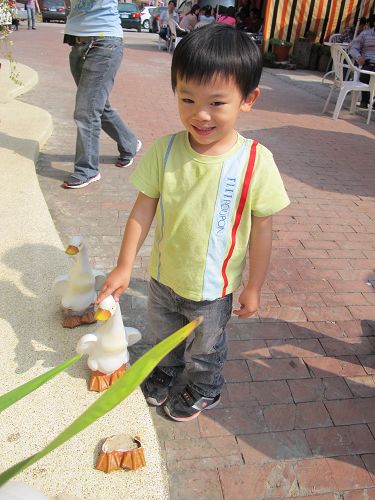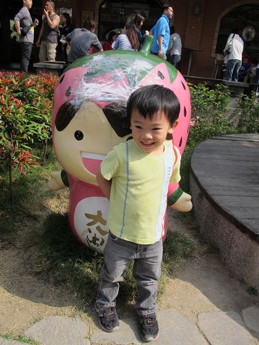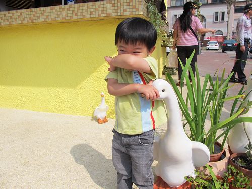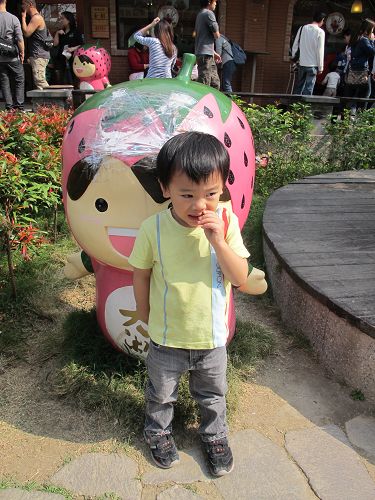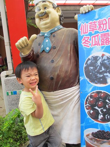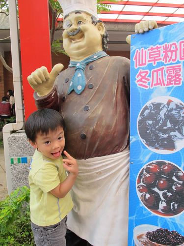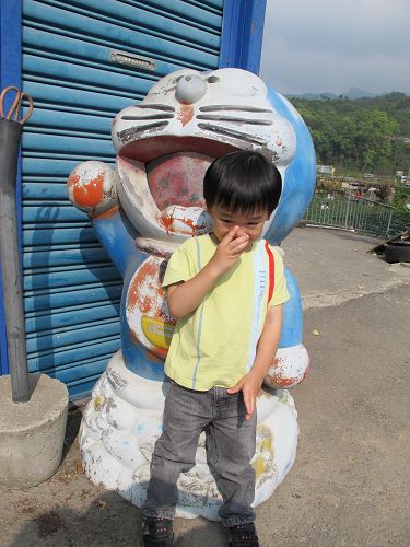 ↑小魚看到啥公仔、雕像就一定要我幫他拍照