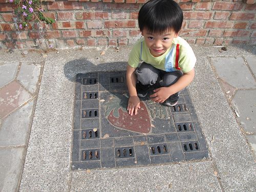 ↑這邊真的好美~連人孔蓋都有草莓的圖案~