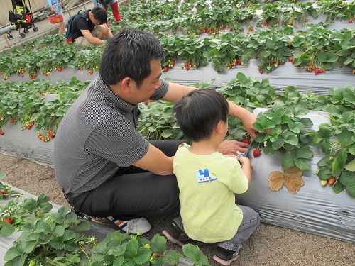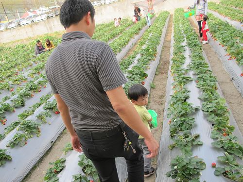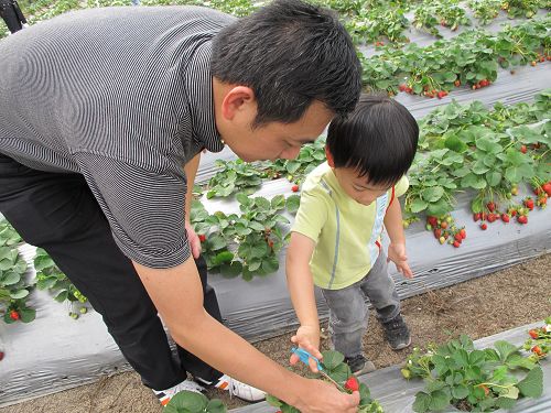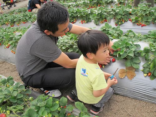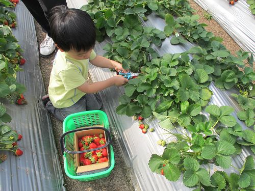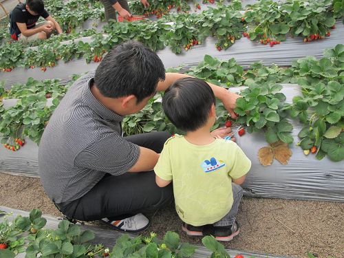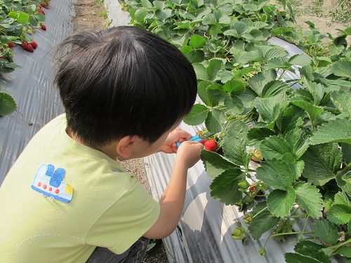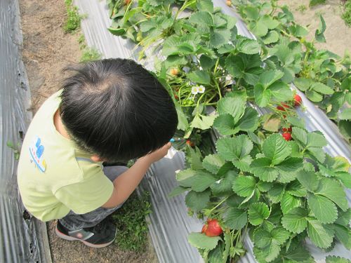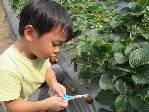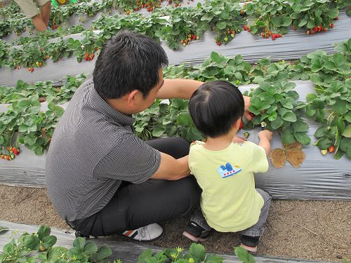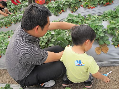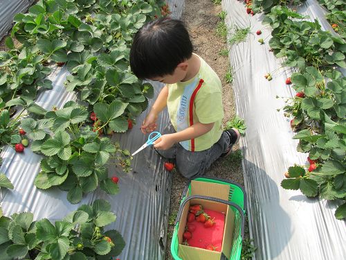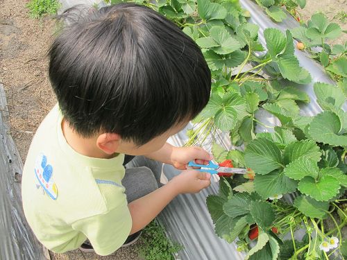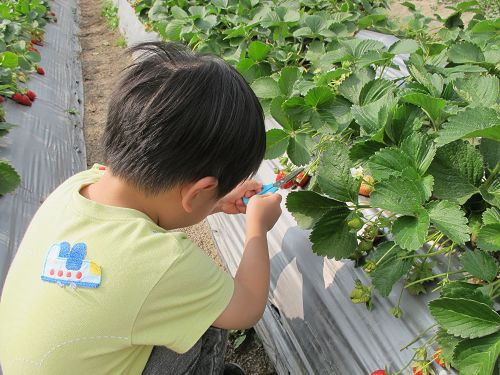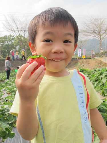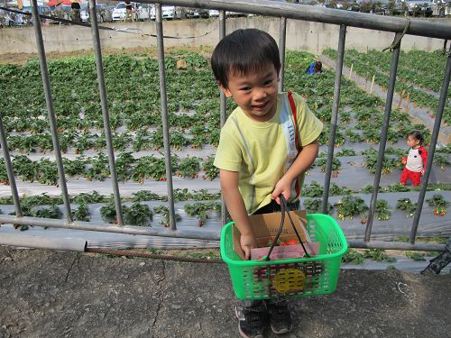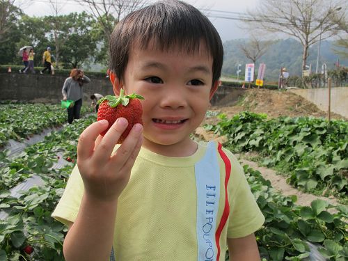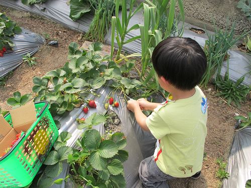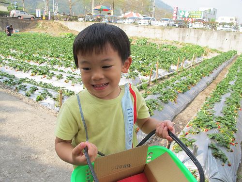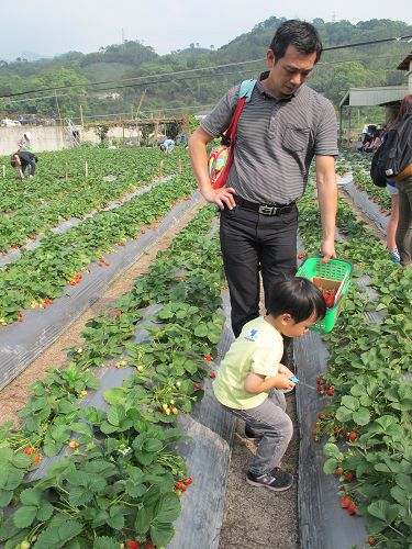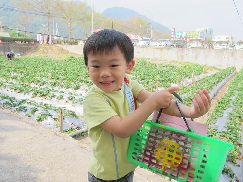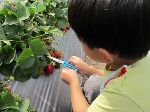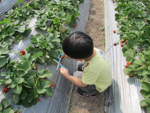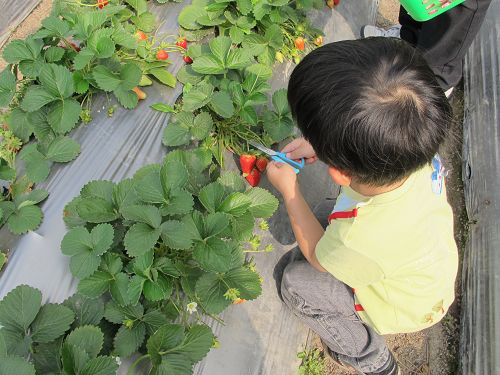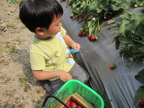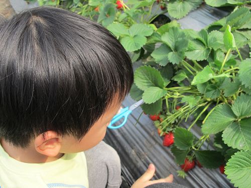 ↑有了第一次採草莓的經驗(請點我) 這次都不用教小魚就會自己用剪刀剪草莓了