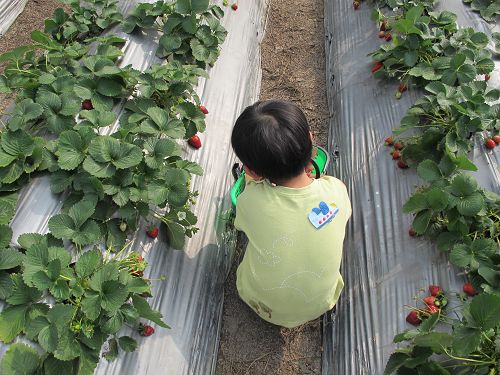 下次就等明年帶妹妹一起來採(踩)草莓囉!